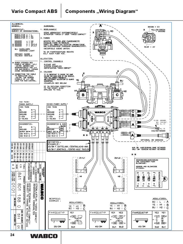 Wabco Vcs 2 Wiring Diagram - schematron.org on Wabco Vcs 2 Wiring Diagram. wheel speed sensor YE 1 wheel speed sensor BU 1 wheel speed sensor BU 2. Pinning - ISO mm² Pin 4 (GND). mm² Pin 1 (GND). Warning. Lamp. Trailer ABS. Trailer ABS Components ABS relay modulator Electronic Control Unit (ECU) ECU Wiring Diagrams · ABS Diagnostic Tools STEP 4: Blink Codes for Wabco VCS II version ECU.